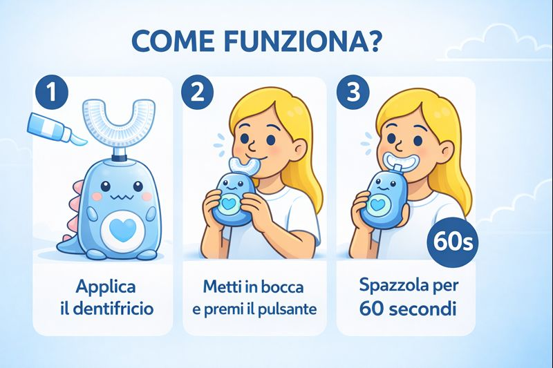 Spazzolino elettrico a forma di “U” per bambini.